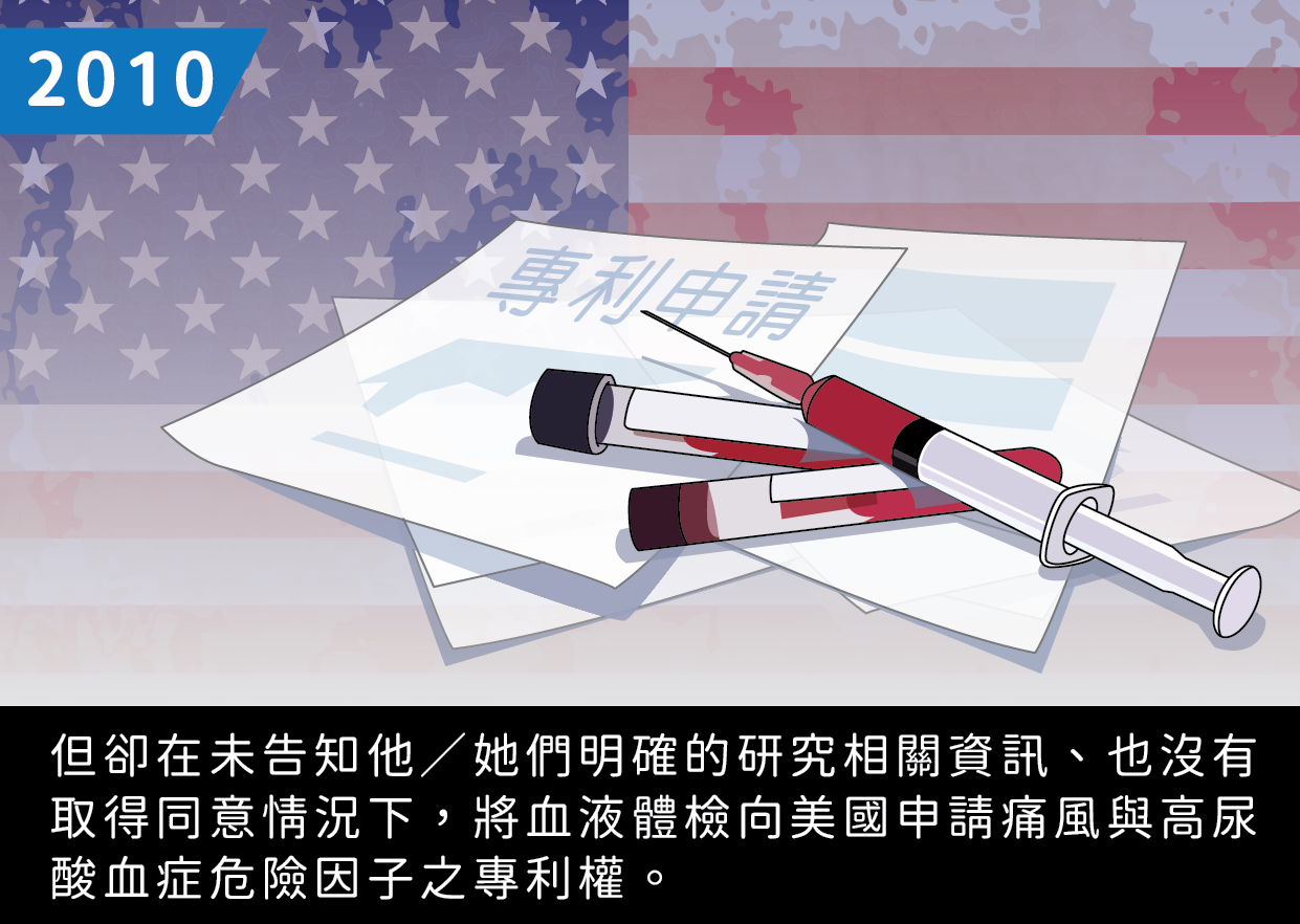 Q1:本案例中,研究參與者同意參與研究,是否表示研究參與者也同意研究者將研究所產生的結果註冊專利?(此為開放式問題) |