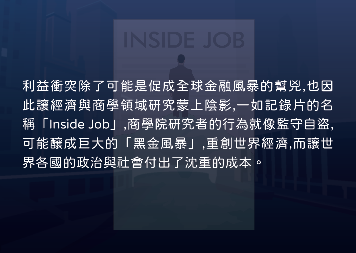 我們都理解醫師以藥廠贊助的經費執行研究計畫,卻沒有對病人或參與者揭露此訊息是一種利益衝突;相較於生物醫學領域經常探討利益衝突的議題,行為社會領域顯然較少涉及此議題,但利益衝突案例依然存在於許多行為社會科學領域。以下將介紹商學院教授引發爭議的一項研究案。